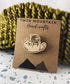 Our bag pins are engraved on premium cherry wood and affixed with a pin post on the back.