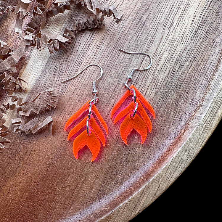These light-weight earrings are the perfect statement to add an extra pop to your outfit! These are made to order and can be made in one of our various acrylics or premium wood options. Both materials are very lightweight so you can enjoy large, statement earrings comfortably all day. Hypoallergenic endings are used on all of our jewelry pieces.