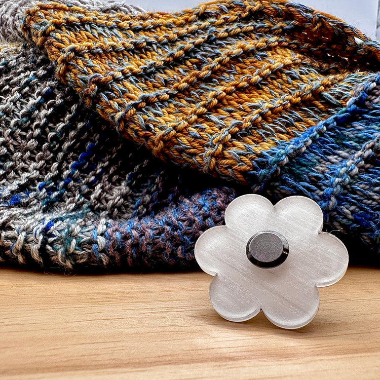 This functional clasp keeps your shawl, cowl or scarf securely around your neck by utilizing a chicago screw on the backside of the design.