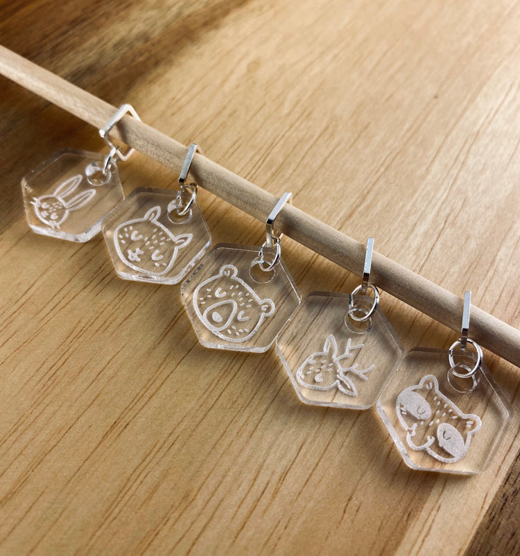 This set of (5) stitch markers can be customized to your liking. All of our items are made to order based on your modifications. Simply choose your preferred material (acrylic or wood), stitch marker ending/finish of choice, and we will take care of the rest!