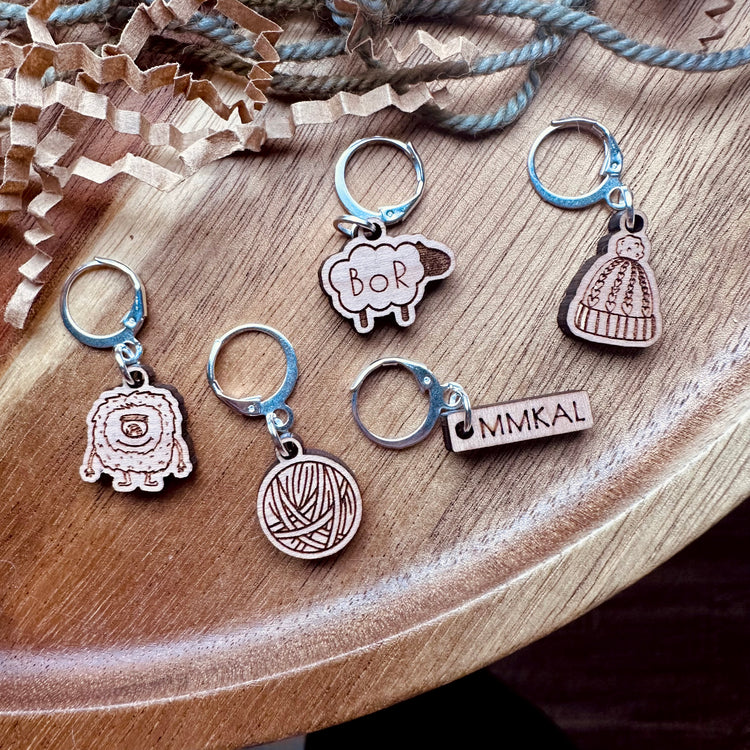 Our Instagram friends, Sue (@smcarn) and Jesse (@circletoes) often host a Monster Musselburgh Knit-Along. Using Ysolda’s Musselburgh Hat pattern, participants are encouraged to use remnants and scraps to make a hat that is striped and unique. Our Monster Musselburgh stitch marker set works great for the Musselburgh pattern, and as with all our markers, our Monster Musselburgh set is fully customizable by material, color, and ending.