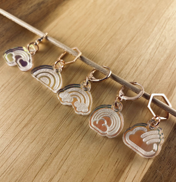 This set of (5) stitch markers can be customized to your liking. All of our items are made to order based on your modifications. Simply choose your preferred material (acrylic or wood), stitch marker ending/finish of choice, and we will take care of the rest!
