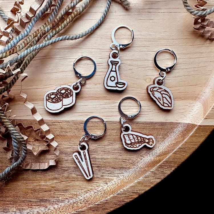 This set of (5) stitch markers can be customized to your liking. All of our items are made to order based on your modifications. Simply choose your preferred material (acrylic or wood), stitch marker ending/finish of choice, and we will take care of the rest!