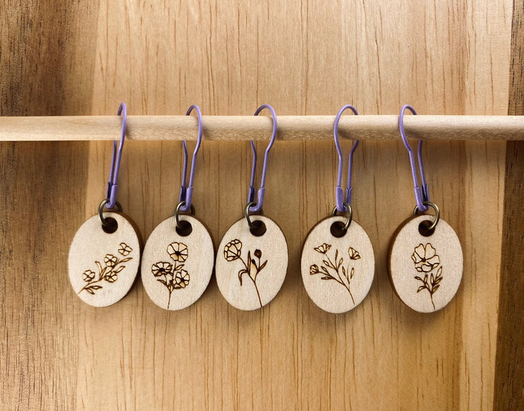 This set of (5) stitch markers can be customized to your liking. All of our items are made to order based on your modifications. Simply choose your preferred material (acrylic or wood), stitch marker ending/finish of choice, and we will take care of the rest!