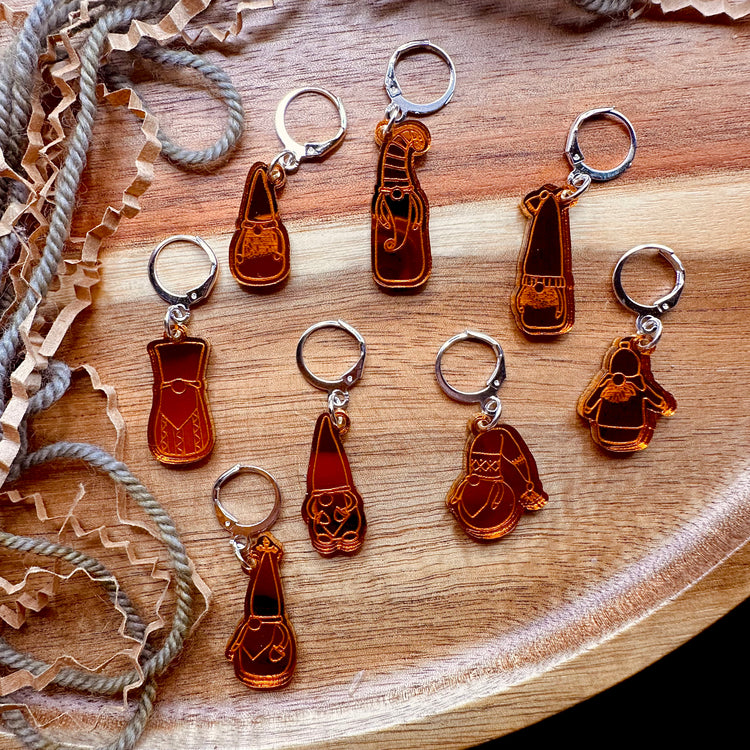 In collaboration with Sarah Schira of Imagined Landscapes and her 2025 Year of the Gnomes event, we’re thrilled to introduce our Gnome Stitch Marker Set! This complete collection features all eight beloved gnomes from The Gnomes of Grimblewood, transformed into lightweight, snag-free stitch markers.