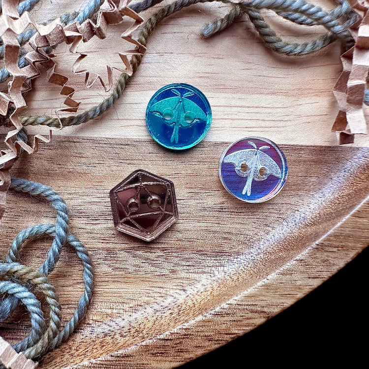 Choose any of our existing stitch marker images and turn them into your own custom button set! Choose your desired material and size, then use the notes section to describe the stitch marker image(s) you'd like engraved on your button(s).